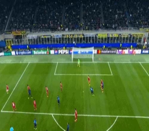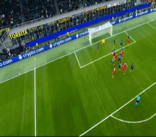 伤停补时第6分钟,巴斯托尼左路传中,落点恰到好处,劳塔罗力压范戴克头槌攻门,阿利松回敬精彩扑救,利物浦险些压哨丢球。