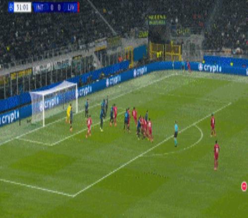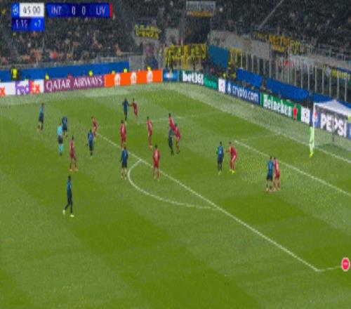 第45分钟,劳塔罗甩头攻门,阿利松神扑救主。
