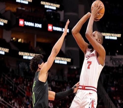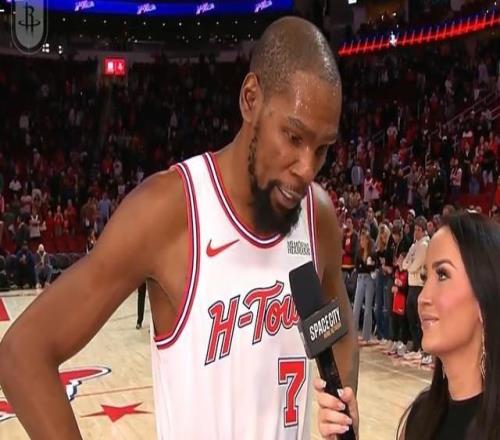 北京时间今日,在NBA常规赛中,休斯顿火箭队在主场以119-110击败了新奥尔良鹈鹕队,取得两连胜。赛后,迎来生涯总得分里程碑的凯文-杜兰特接受了场边采访,他谈到了同样在本场百艾砍